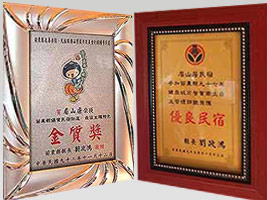 民宿金質獎、衛生優良評鑑。